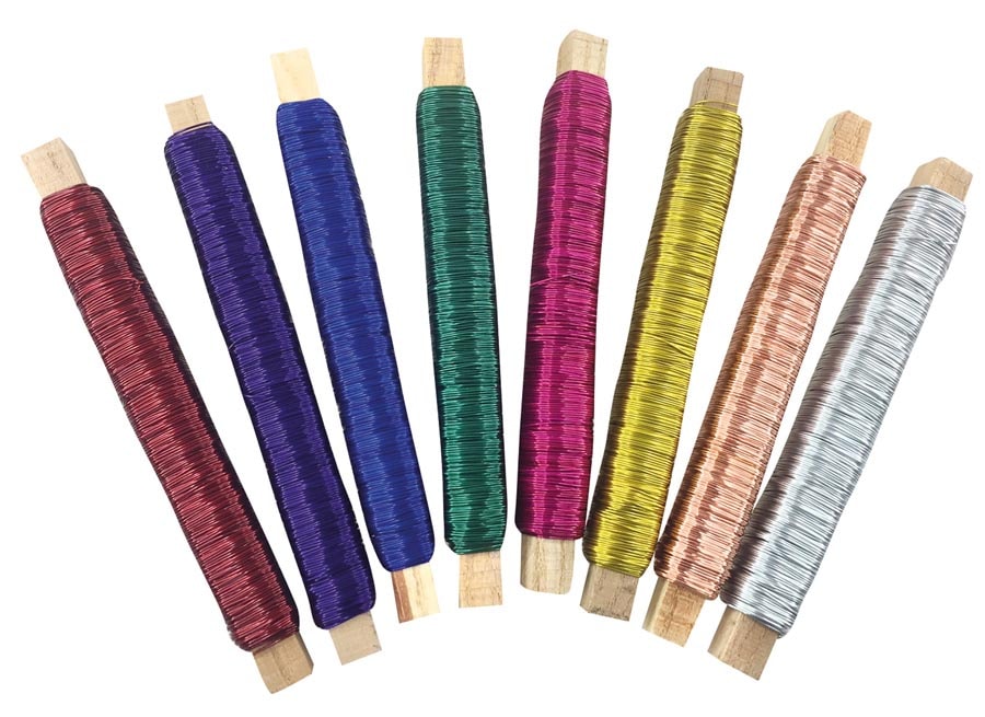 High-quality metal wire in eight different colors - red, purple, blue, green, cerise, gold, copper and silver. Ideal for crafts and decorations.