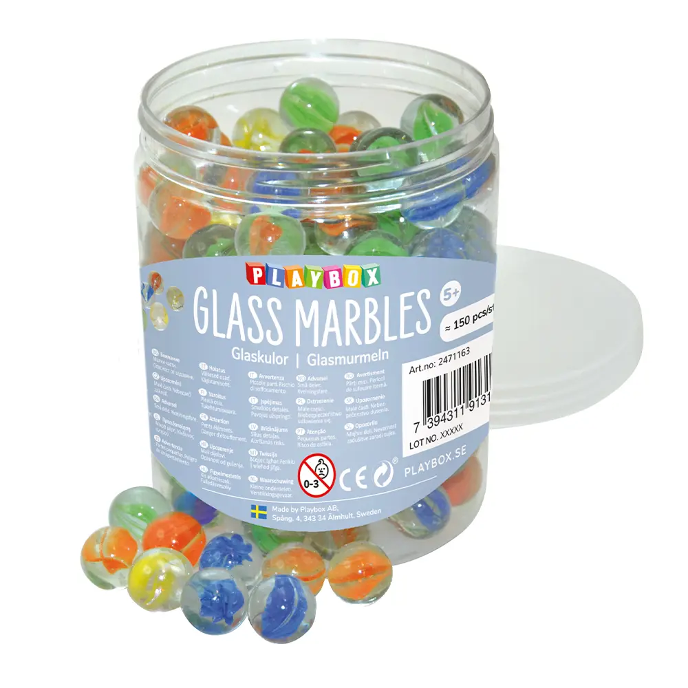 Glass beads in several different nice classic colors. Suitable for decoration or the traditional ball game. Many people think it's fun to play marbles out in the yard or with their friends at school. It