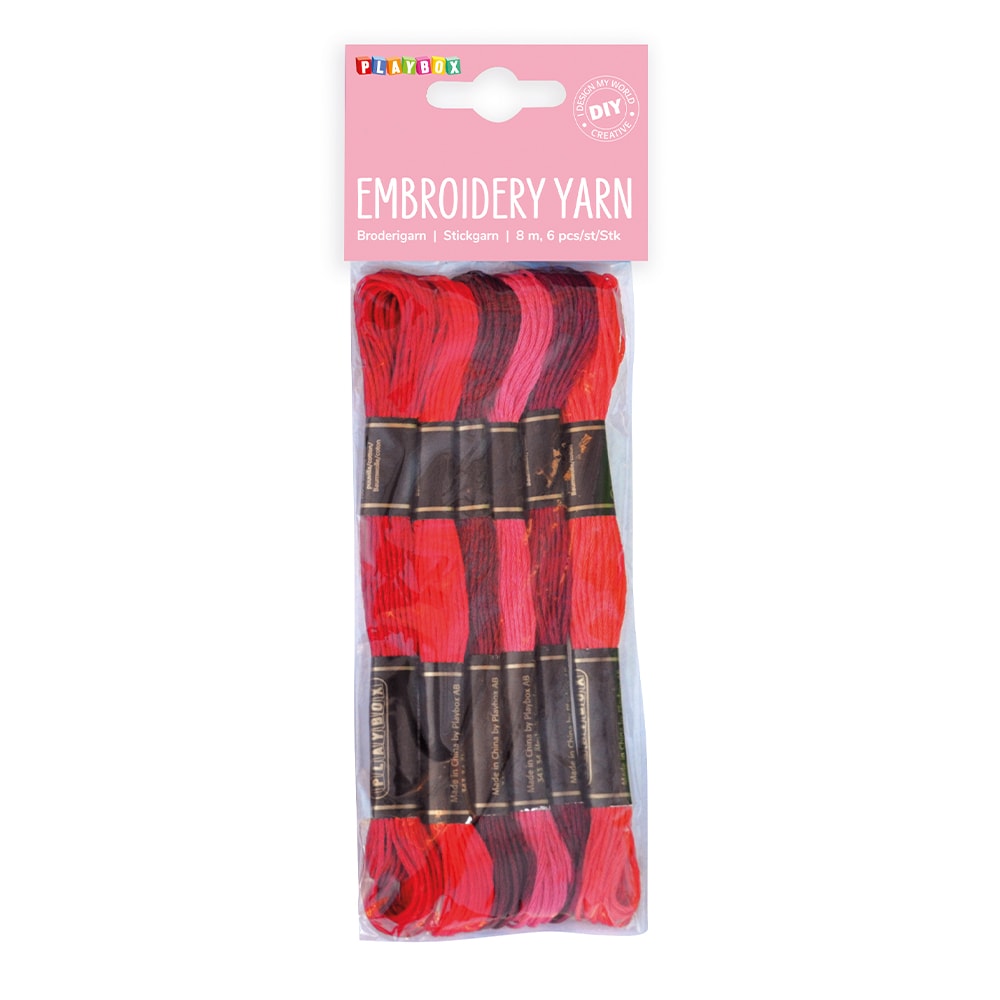 Embroidery yarn of cotton in several shades of red. The high quality of the yarn makes it easy to embroider with. We recommend our embroidery bows to and feel free to take a look at our craft tips for inspiration and