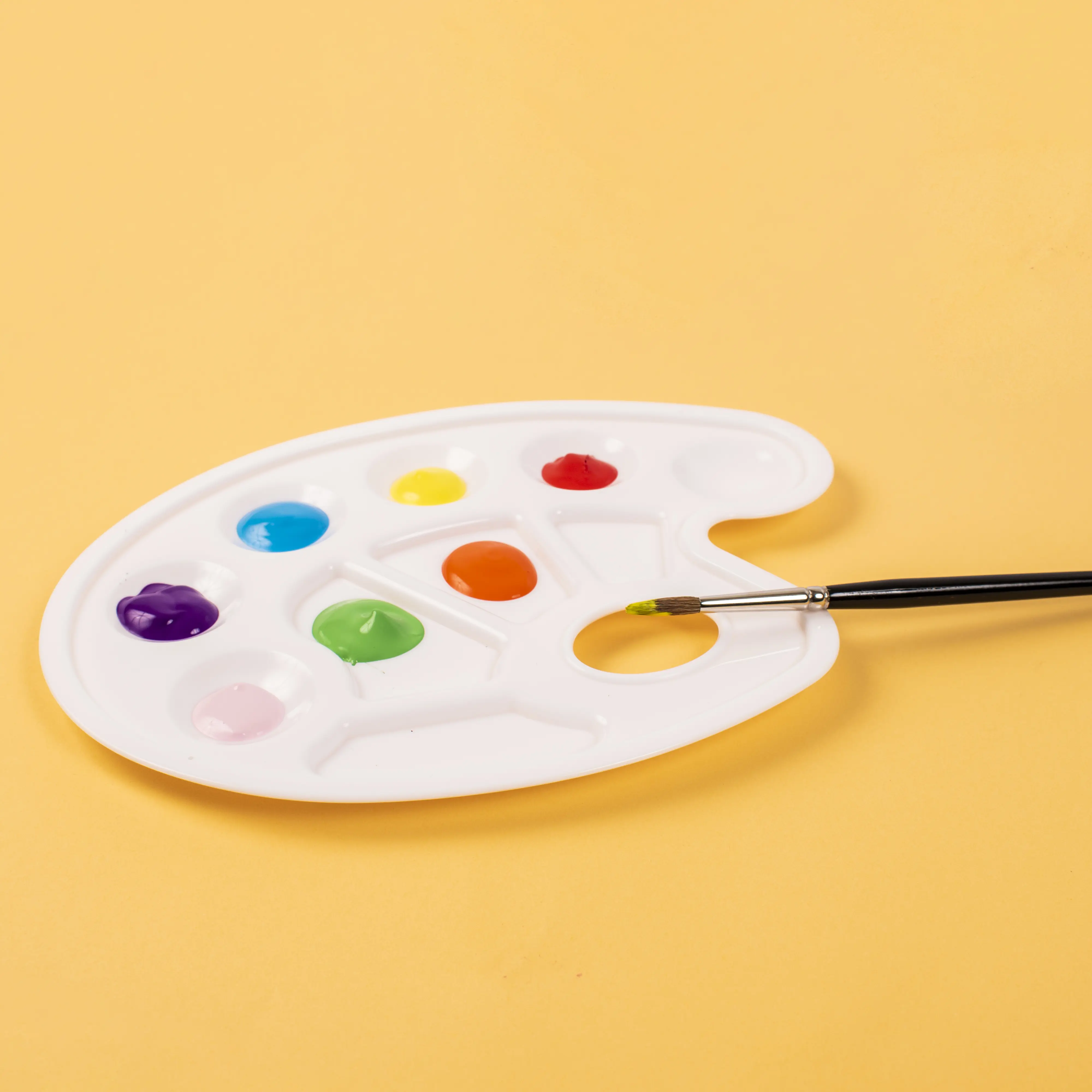 Ergonomic color palette that can be filled with our acrylic or oil paints. The palette is easy to wash out and has a long life. Pack of 5 pcs.
