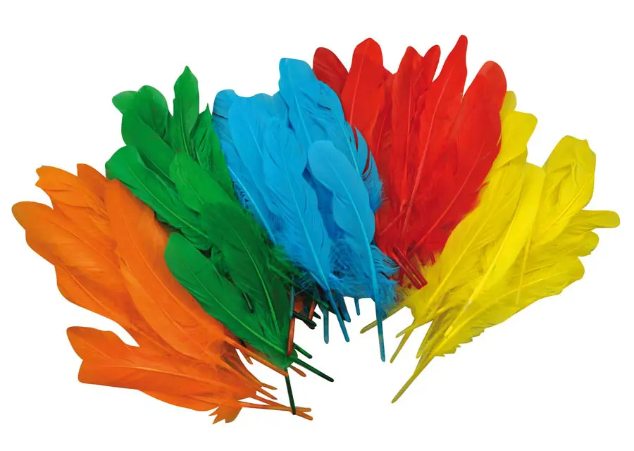 Fjädrar i härliga färger som kan användas till massor av saker. Dekorera en ansiktsmask, påskpynta eller kanske limma fast på en teckning. Kika gärna på våra pysseltips där du hittar mer inspiration.
