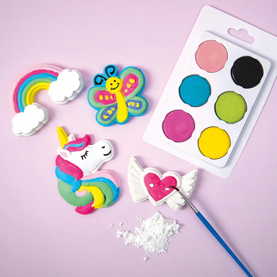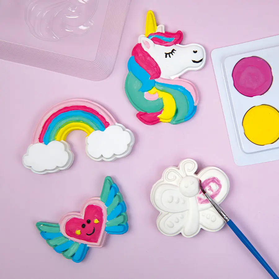 Skapa dina egna kylskåpsmagneter i gips, ett kreativt pyssel för barn och vuxna!
