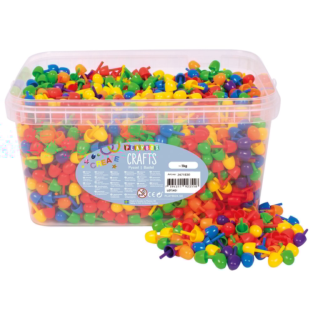 Färgmosaik med mellanstora piggar, förpackade i en praktisk back. Använd din fantasi för att göra olika mönster, bara fantasin sätter gränser! Kan kombineras med våra andra storlekar