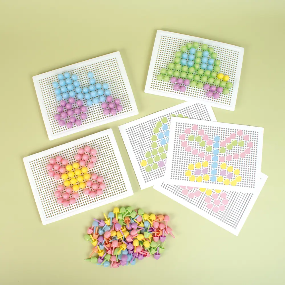 Utforska färg och form med denna fina pysselväska fylld med färgmosaikbitar i härliga pastellfärger. Med den medföljande plattan och tydliga mönsterkort är det enkelt och roligt att skapa motiv bit för bit. Den praktiska väskan gör det lätt att hålla ordning och ta med pysslet vart du än går. Perfekt för barn som vill öva färgigenkänning, finmotorik och koncentration samtidigt som de skapar med fantasi och glädje.