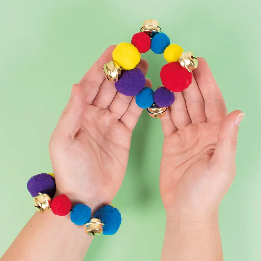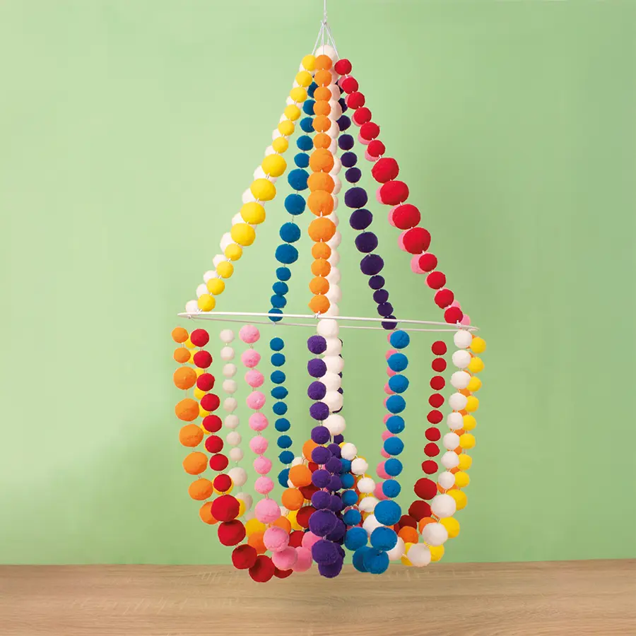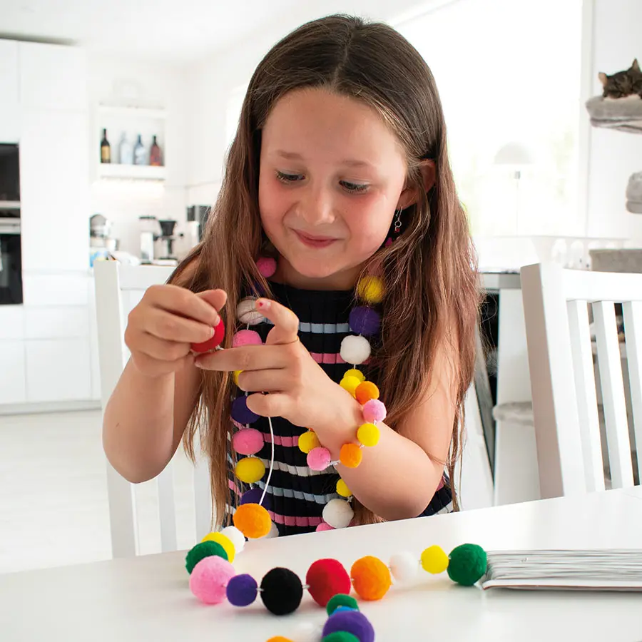 Mjuka pompompärlor som är lätta att trä på tråd. Pärla ett mjukt halsband eller ett kul armband. Med riktigt många pärlor kan du göra ett helt draperi.