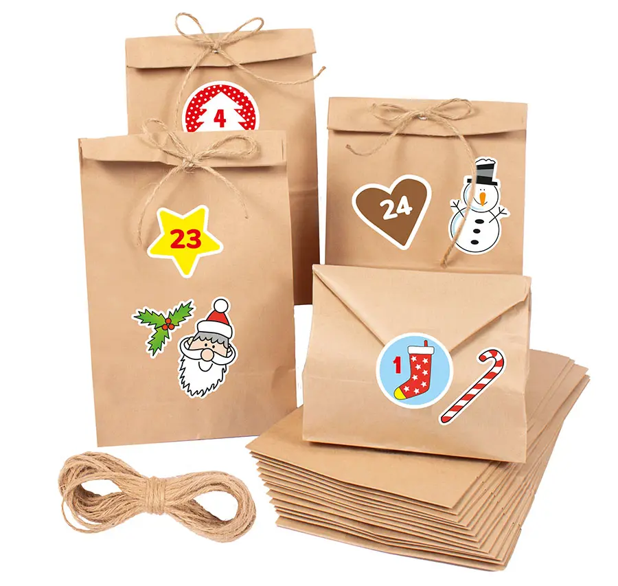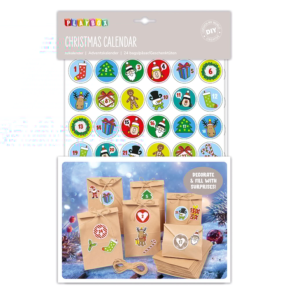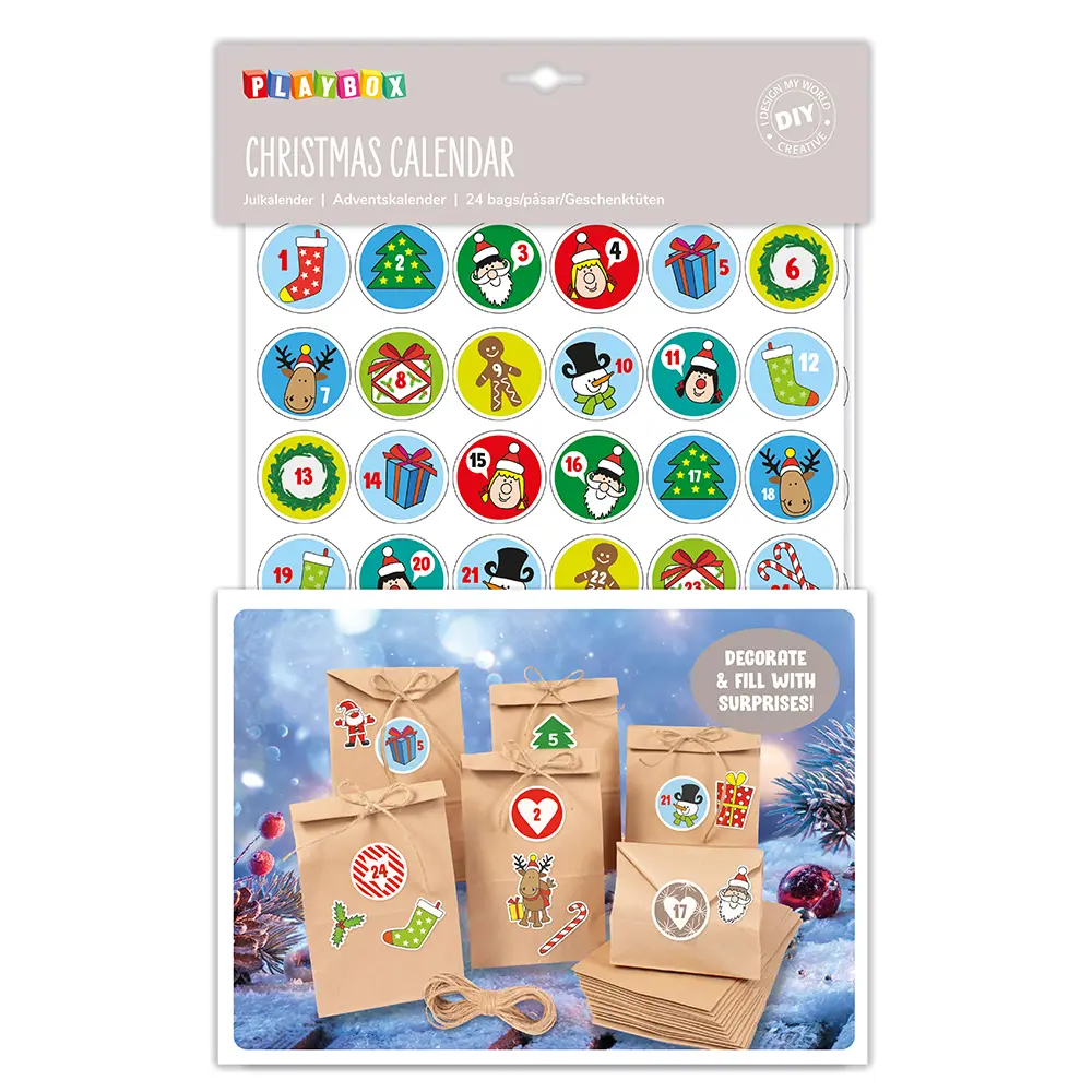 Kom i julstämning varje dag i december. Underbart juliga klistermärken används till denna julkalender och fina papperspåsar som ger den rätta julkänslan.