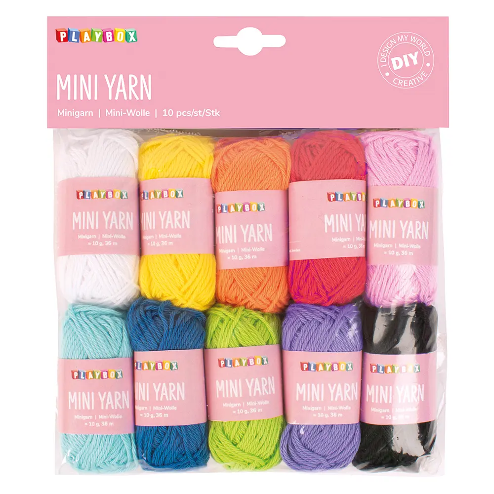 Mininystan i tio olika färger. Bomullsgarnet är av hög kvalitet och har många praktiska egenskaper, kan med fördel användas till stickning, virkning, broderi och pysseltillverkning. Bomullsgarnet är fritt från AZO-färger.