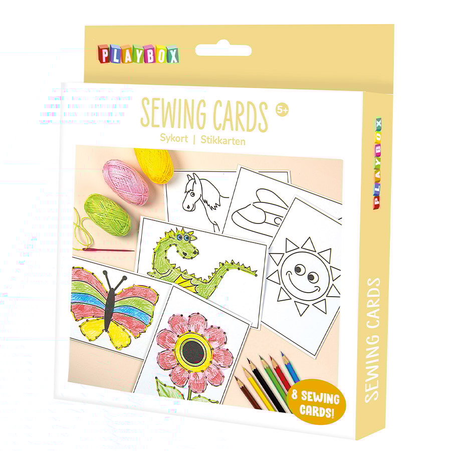 Pysselset som innehåller sykort, färgpennor och garn – allt som behövs för att komma igång med tillverkningen och passar bra för nybörjare. Kika gärna på våra pysseltips och lär dig sy med sykort.
