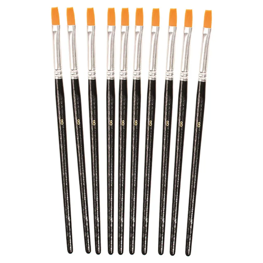 Flat pensel av syntetmaterial med lackerat skaft. Passar bra till våra akryl- och oljefärger. Förpackning med 10 st.