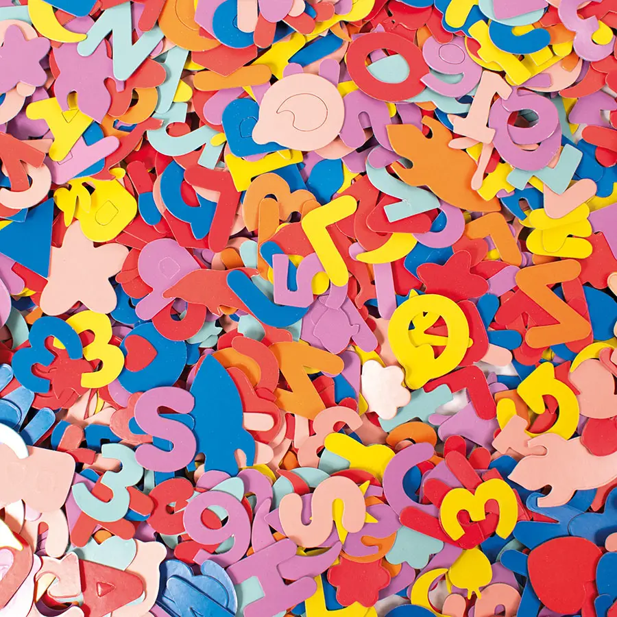 Bokstäver, siffror och olika figurer i härliga basfärger, utstansade i kartong och förvarade i en praktisk hink. Gör fina grattiskort, dekorera dagboken eller fäst på girlanger till nästa kalas.