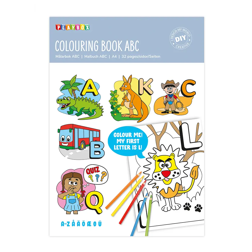 Rolig målarbok att färglägga i. Lär dig bokstäver samtidigt som du färglägger motiv. Den perfekta kombinationen mellan pedagogik och skapande som båda skapar utrymme för lärande. Det blir ännu roligare att färglägga tillsammans.