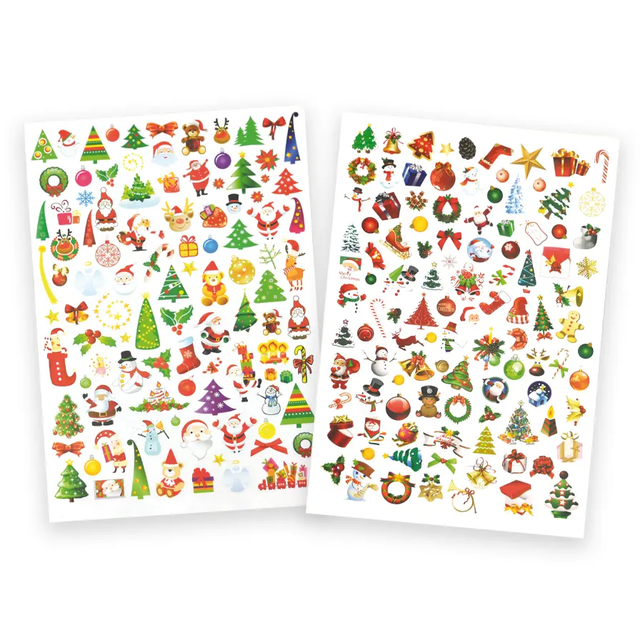 Stickers med olika julmotiv som passar bra till att dekorera julklappar och julkorten med. Varför inte göra en egen pappersjulgran och dekorera med dessa klistermärken.