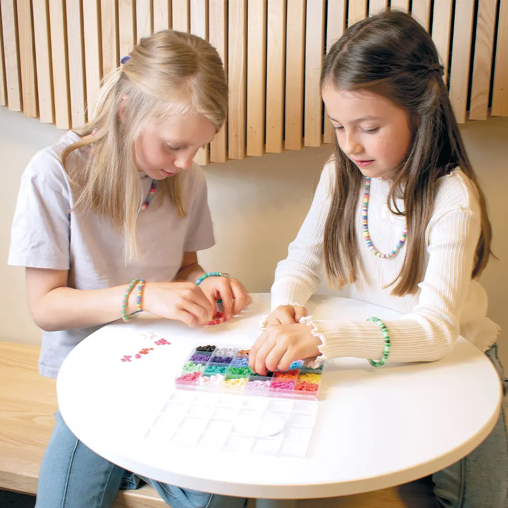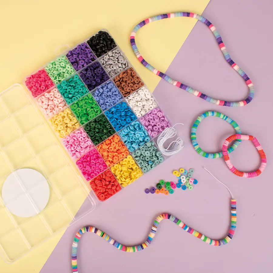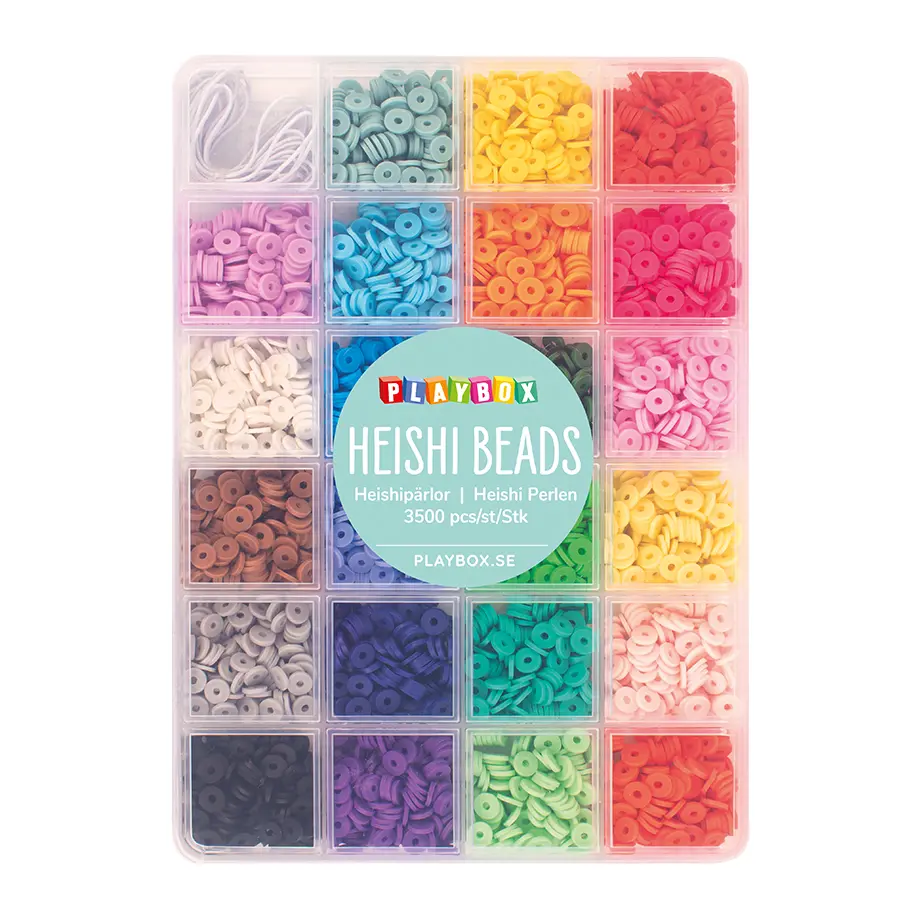 Skapa dina egna smycken med denna smidiga förvaringsbox fylld med Heishipärlor. Du får totalt 3500 pärlor i 23 olika färger, perfekt för armband, halsband, fotlänkar och andra kreativa pysselprojekt. I boxen finns 210 cm elastiskt snöre, så du kan börja pyssla direkt. En komplett pärlbox som passar lika bra för barn som för vuxna som älskar att designa och skapa sina egna smycken.