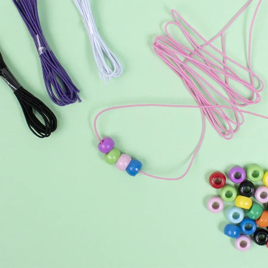 Elastiska snoddar i olika färger och av hög kvalitet som inte trådar sig när man klipper av den. Tillverkad av latex och polyester. Lätthanterlig för barn och passar utmärkt till att göra töjbara armband och halsband eller varför inte personliga nyckelringar.
