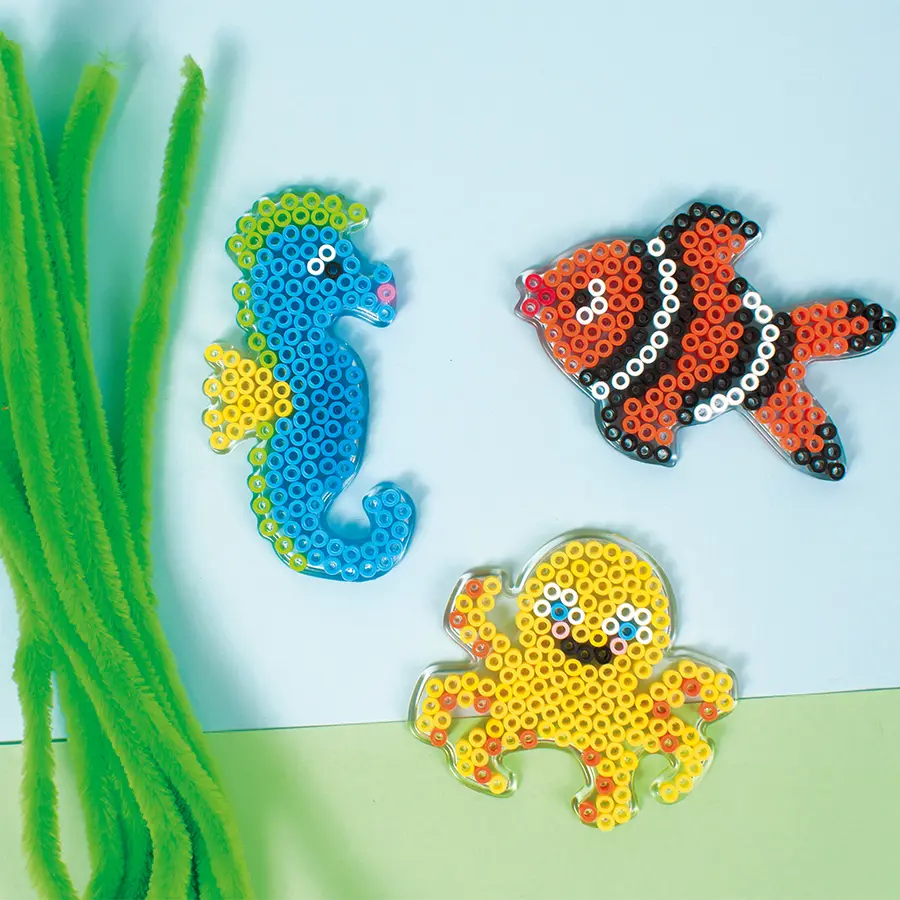 Ge dig ut på ett kreativt undervattensäventyr med dessa pärlplattor i form av bläckfisk, delfin, fisk och sjöhäst. Perfekta för barn som älskar havets djur och vill skapa egna färgglada figurer med rörpärlor. De transparenta plattorna gör det enkelt att följa mönsterort och pärlandet tränar både fantasi och finmotorik. Ett roligt och lärorikt pyssel som passar lika bra hemma som i skolan eller på fritids.
