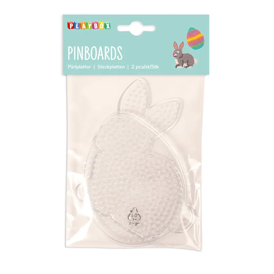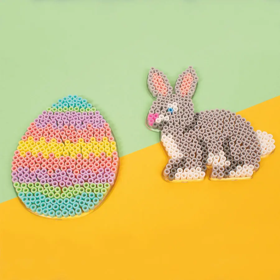 Pärlplattor i form av ägg och kanin. Pärlplattorna är transparenta vilket gör det lätt att lägga mönsterkort under. Att lägga pärlplattor främjar barns finmotorik, koncentration och kreativitet på ett roligt och utvecklande sätt. Plattorna tillsammans med midi rörpärlor passar för alla åldrar.