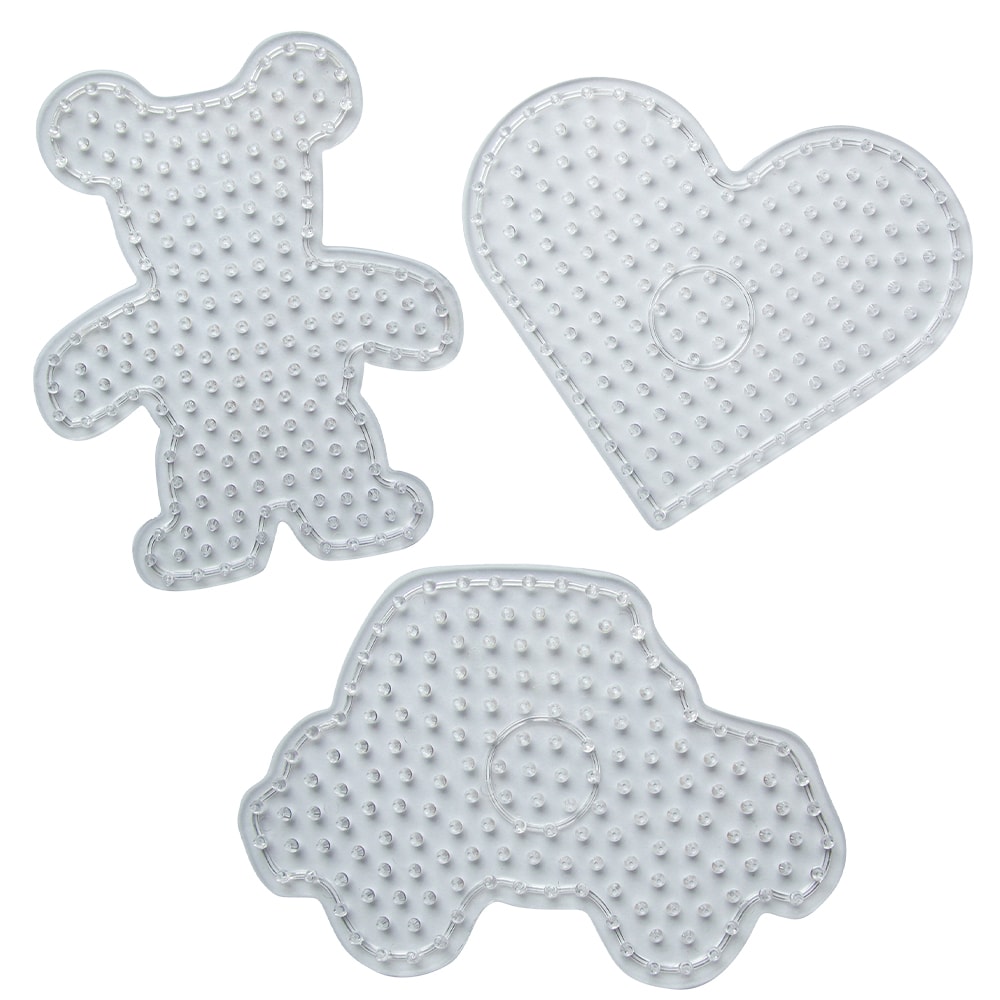 Pärlplattor i olika motiv för stora pärlor. Motiven är björn, hjärta och bil. Pärlplattorna är transparenta, vilket gör det lätt att lägga motivkort under. Vi rekommenderar våra XL-pärlor till pärlplattorna. Perfekt för nybörjaren.