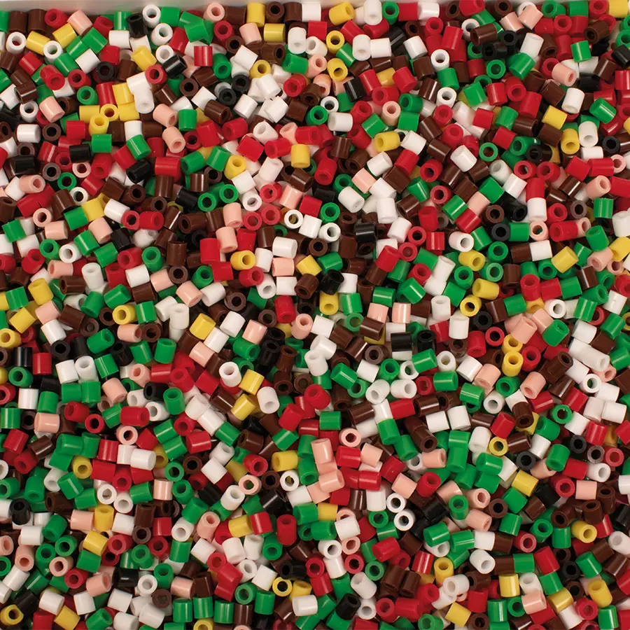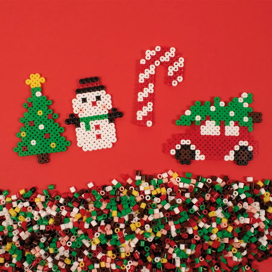 Lägg massa pärlplattor i julmotiv och dekorera hela hemmet med julpynt som ni gjort själva. Denna färgblandning av rörpärlor har alla julens färger och inspirerar både barn och vuxna att börja skapa julpynt.