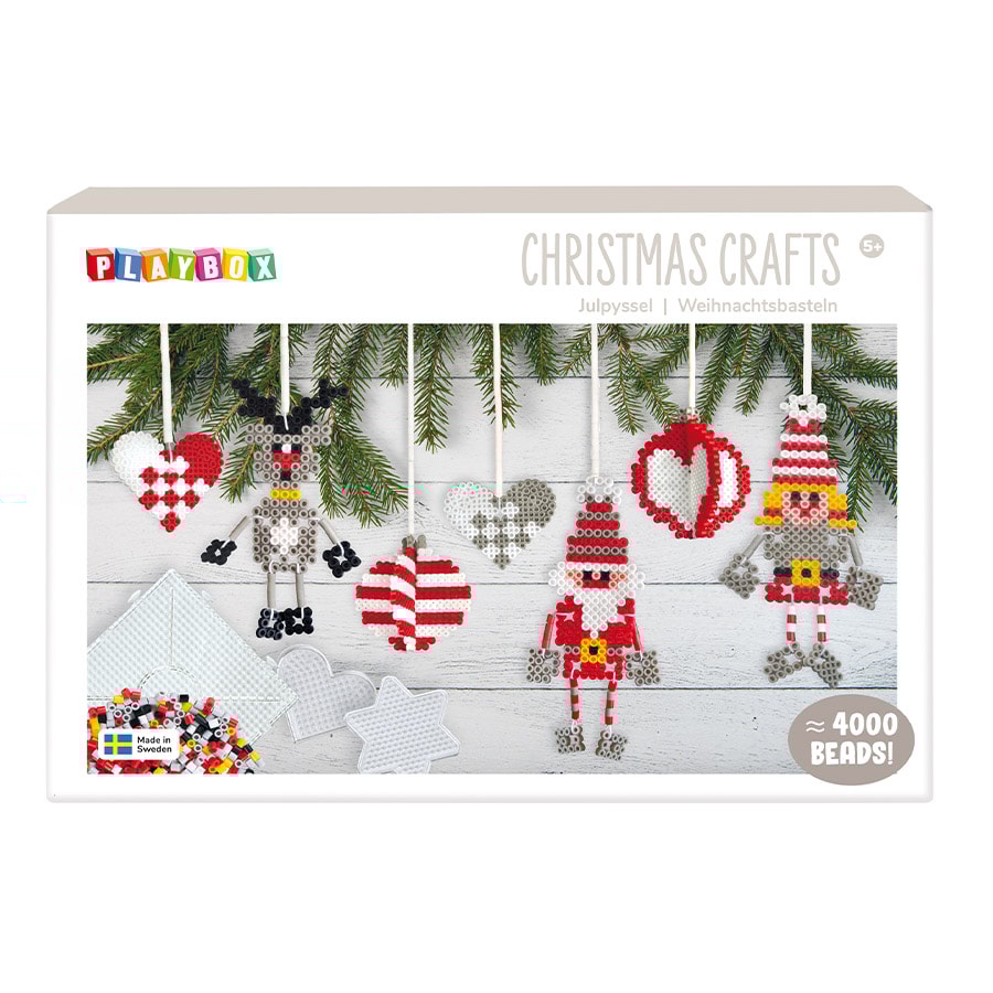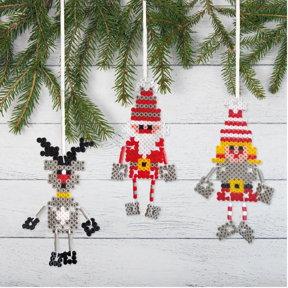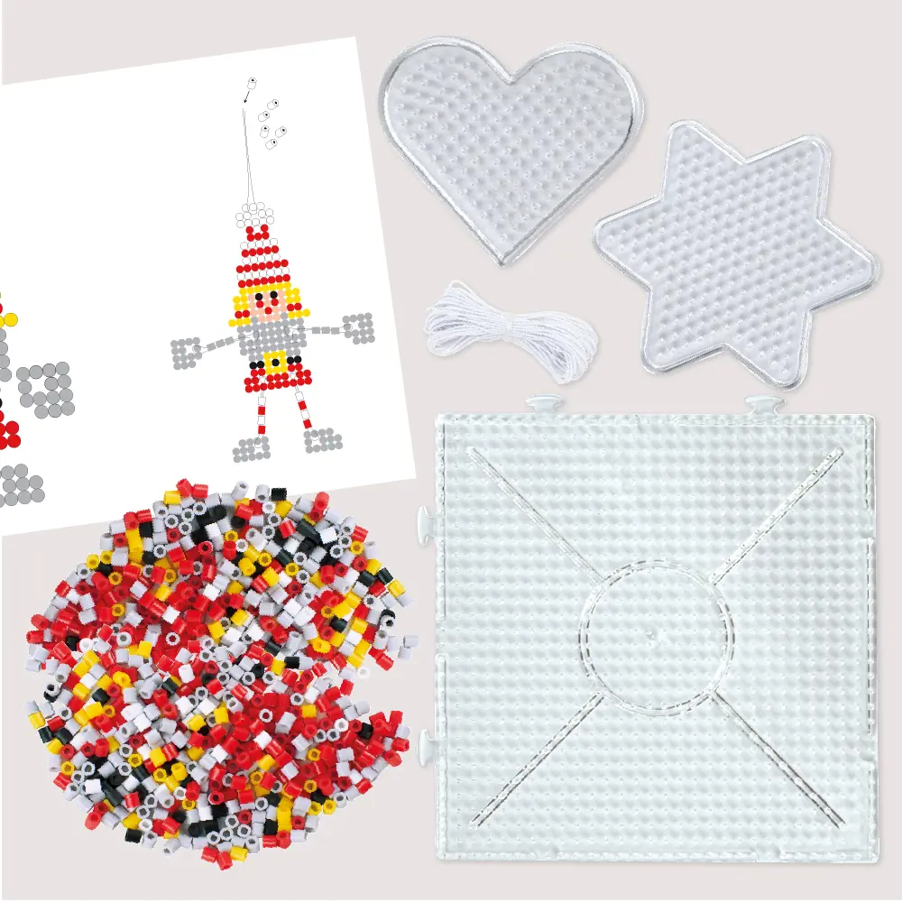 Skapa eget julpynt! Ett komplett set med rörpärlor och pärlplattor. Innehåller allt som behövs för att snabbt komma igång med skapandet av julmotiv som du sedan kan pynta granen med. Alla pärlplattor är transparenta, vilket gör det lätt att följa mönsterkortet som läggs under. Avsluta med att lägga på smörpapperet och stryka ihop de färdiga figurerna. En trevlig aktivitet för hela familjen.