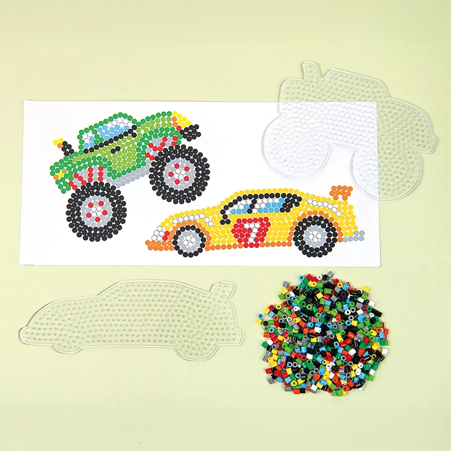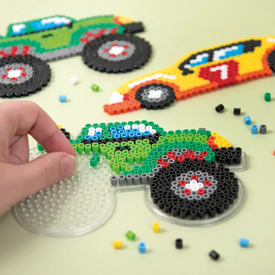 Gör dig redo för fartfyllda pärläventyr med detta roliga pärlset med racerbil och montertruck. Setet innehåller två genomskinliga pärlplattor som gör det enkelt att följa medföljande mönsterkort och skapa egna figurer med midi rörpärlor. Perfekt för små händer som vill träna finmotorik, för kreativa pysselstunder och för barn och vuxna som älskar att pärla tillsammans. Oavsett om du är nybörjare eller pärlproffs bjuder det här setet på timmar av utvecklande och rolig aktivitet.