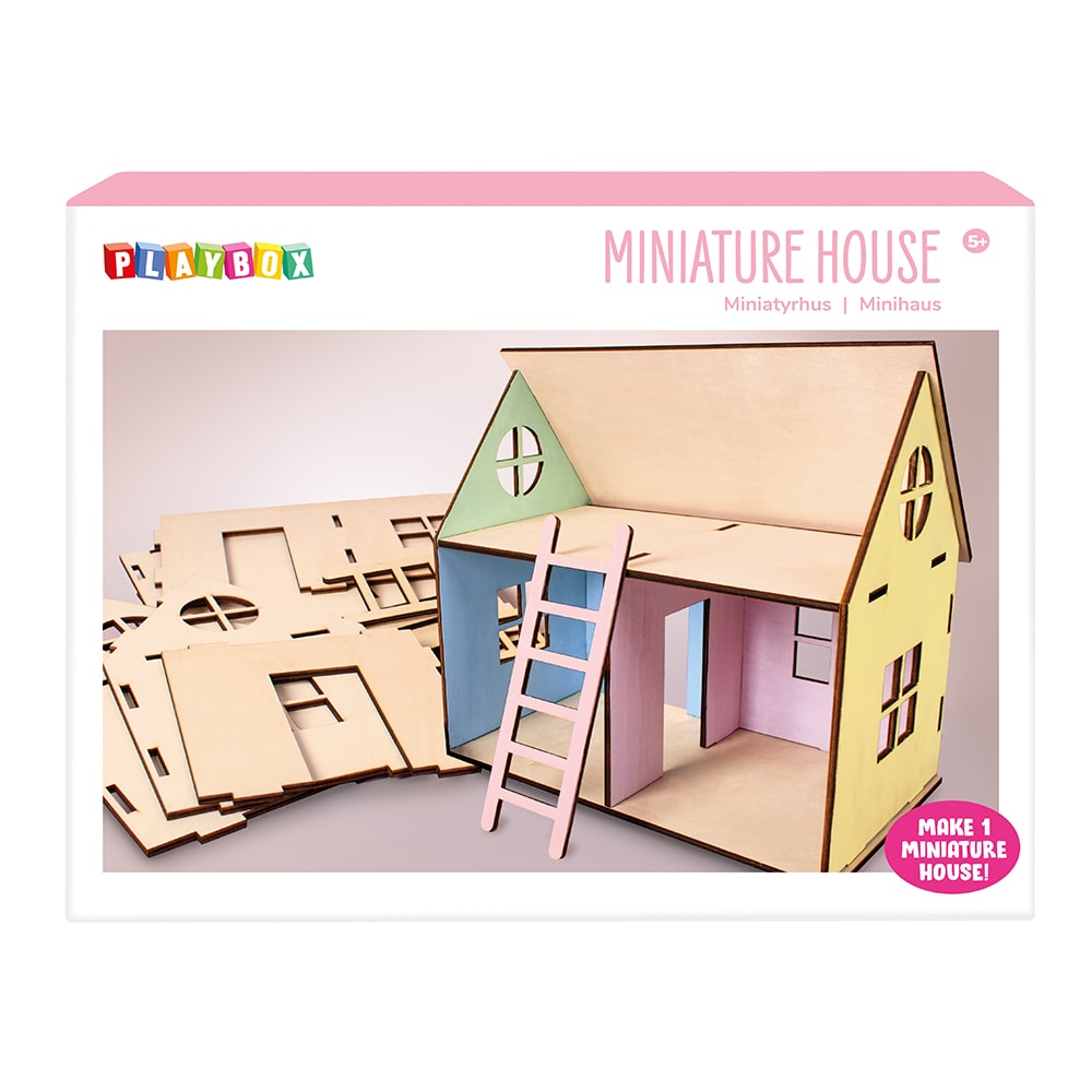 Sätt ihop, inred och designa ett eget miniatyrhus. Klä väggar, tak och golv med självhäftande designpapper i olika mönster. Du kan göra ditt eget dockhus, nissehus eller fylla huset med ditt färdiga pyssel.