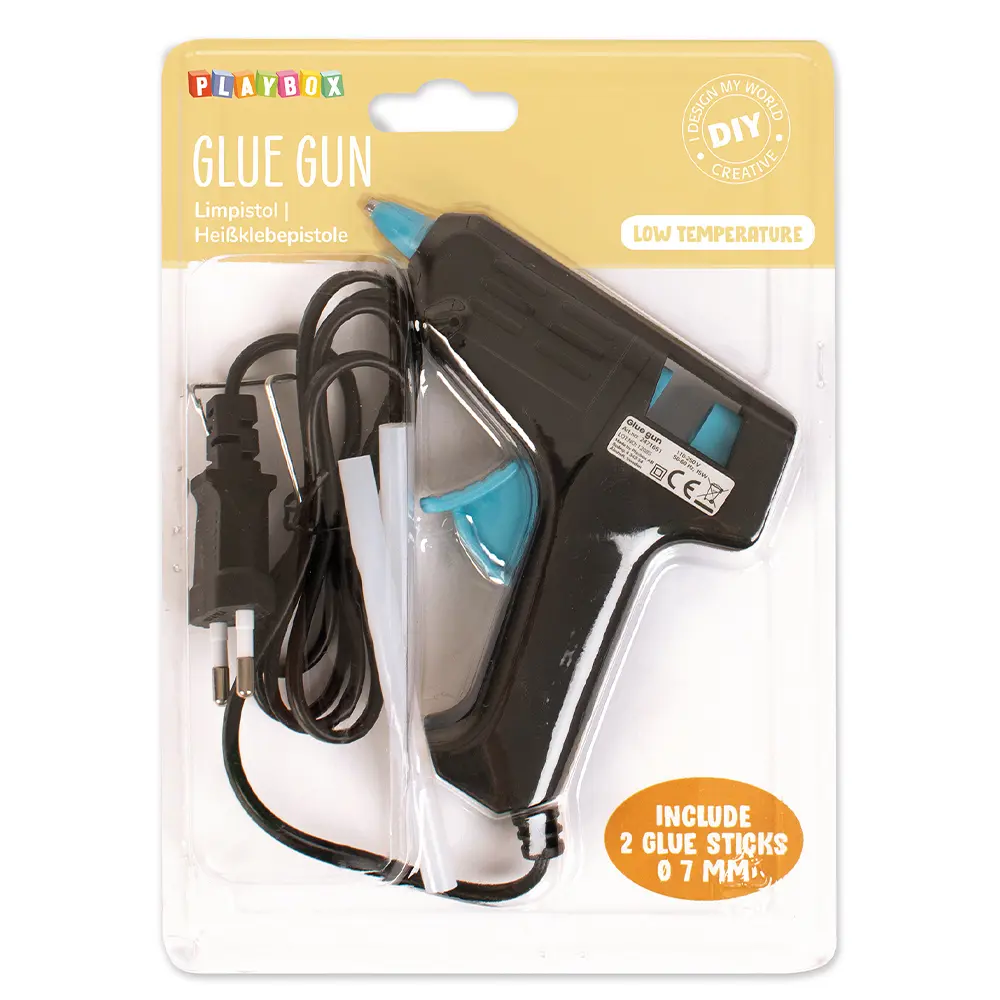 Limpistol lågtempererad, liten och ergonomisk. Limpistolen värms upp snabbt och är mycket enkel att använda. Denna limpistol värmer inte upp limmet lika mycket då smältpunkten är lägre. Passar med limstift som är 7 mm i diameter. Två st limstift ingår!