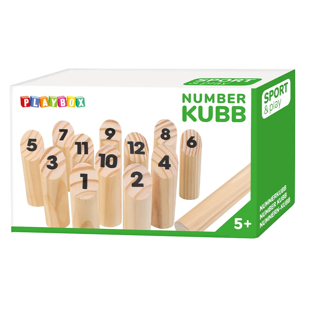 Nummerkubb påminner om vanlig kubb och är ett riktigt kul kastspel. Samla poäng genom att fälla käglorna i detta familjespel där både tur, skicklighet och taktik behövs. Nummerkubb innehåller 12 numrerade käglor och en kastpinne som kastas från cirka 4 meters avstånd.