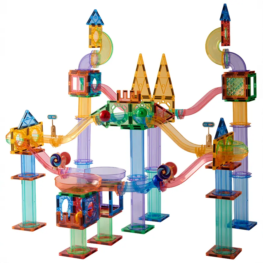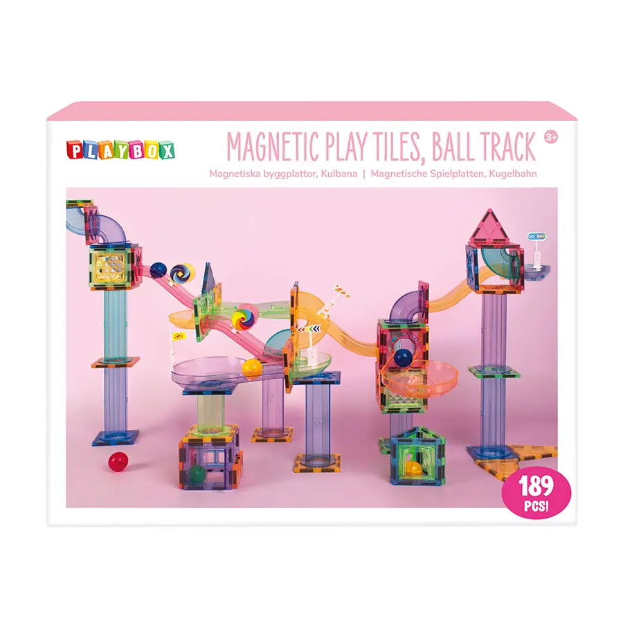 Bygg fartfyllda och fantasifulla kulbanor med 189 delar! Med en kombination av magnetiska plattor och klickbara delar kan barn enkelt sätta ihop kreativa konstruktioner. Setet innehåller 6 kulor som susar genom banorna. Bygg flera banor och låt kulorna tävla mot varandra, vem kommer fram först? Genom leken tränas finmotorik, rumslig förståelse, problemlösning och kreativt tänkande. En säker, hållbar och pedagogisk favorit som växer med barnet och uppmuntrar både självständig lek och samarbete.