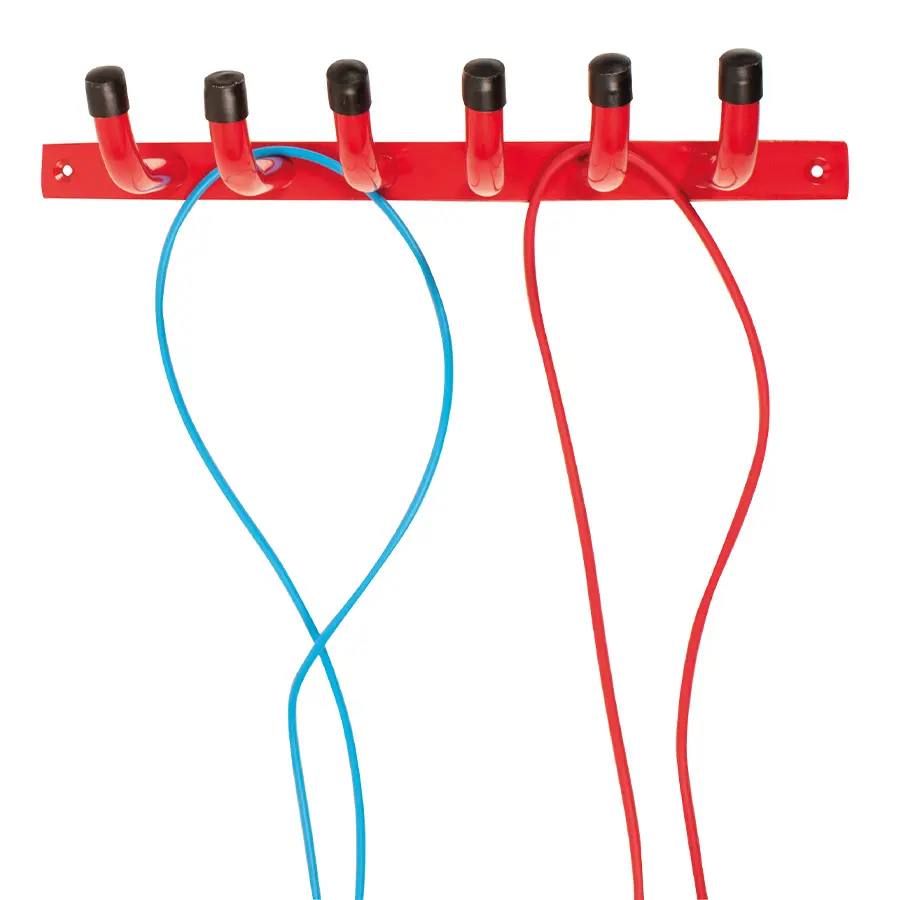 Förvara hopprepen supersmart på väggen med denna praktiska och fina väggförvaring. Sex krokar med plats för många hopprep på varje krok.