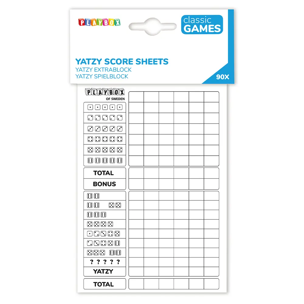 Håll spelet igång längre med våra extra poängblock för Yatzy! Med 90 extra sidor får du ännu fler spelomgångar och kan fortsätta räkna poäng utan att behöva oroa dig för att ta slut. Perfekt för alla Yatzyälskare som vill ha ännu fler timmar av strategiskt tänkande och roliga utmaningar.