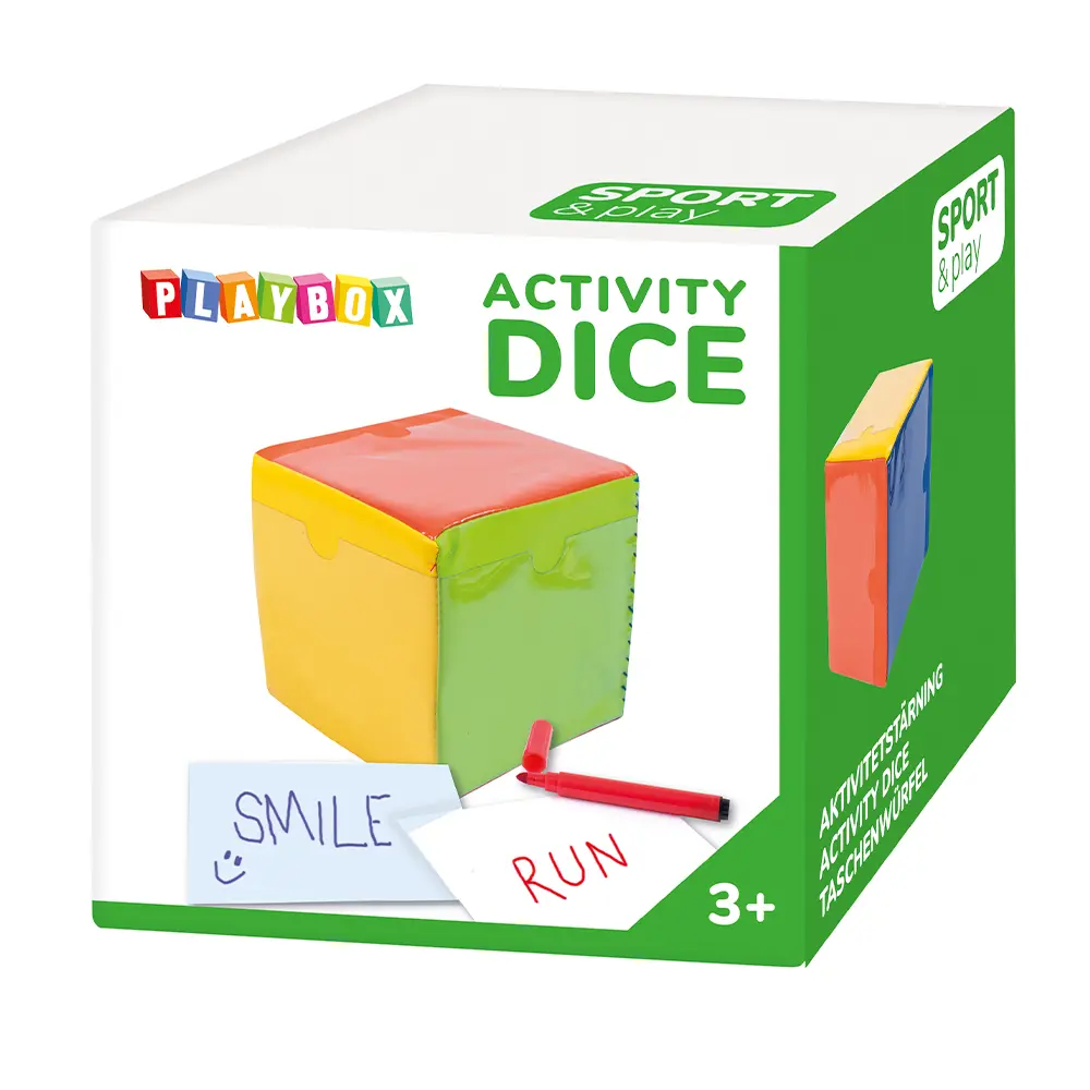 Färgglad tärning med genomskinliga fickor på alla sidor. Skriv lappar med olika aktiviteter och lägg i fickorna, till exempel hoppa som en groda eller slingra som en orm. Aktivitetstärningen ger oändliga möjligheter för att skapa lärorika uppgifter och lekar till barnen. Tärningen är tillverkad i skum så att den inte låter när den åker golvet.
